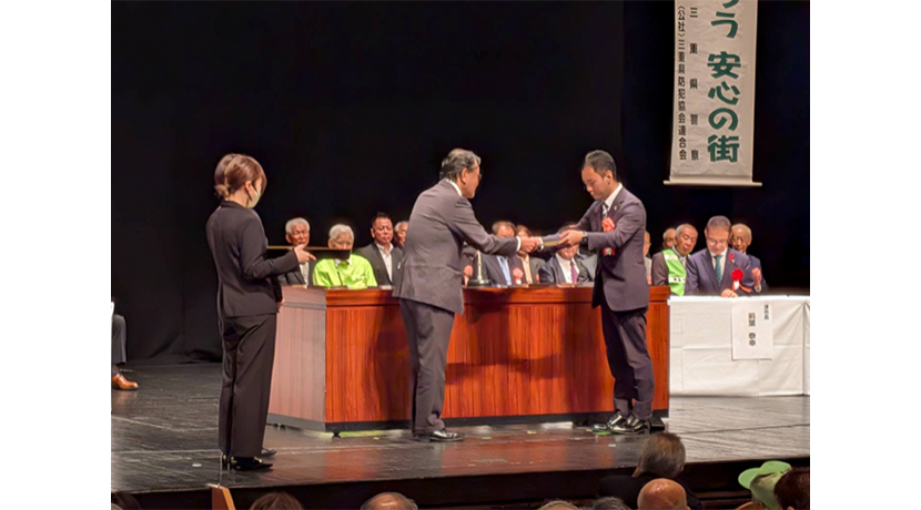 三重県遊技業協同組合(権田清理事長)は10月6日、10月3日に三重県津市において開催された令和7年地域安全・暴力追放三重県民大会において、キング観光(三重県桑名市)が公益財団法人暴力追放三重県民センター(会長:一見勝之三重県知事)から感謝状を授与された旨、伝えた。
