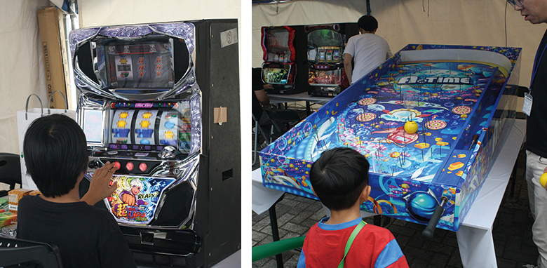 の4ブースを展開。会場は午前中から家族連れなど多くの来場者で賑わい、特にジャンボパチンコには常に行列ができるなど、終日活気に包まれた。