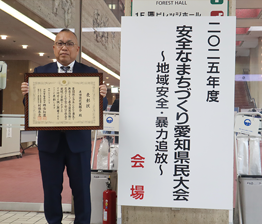 愛知県遊技業協同組合(真城貴仁理事長)は10月16日、名古屋市中区の日本特殊陶業市民会館 において開催された「2025年度安全なまちづくり愛知県民大会」において、同組合の半田遊技業組合(新美保則組合長)が中部管区警察局長及び中部ブロック暴力追放運動推進センター連絡協議会会長から表彰状を授与されたことを伝えた。