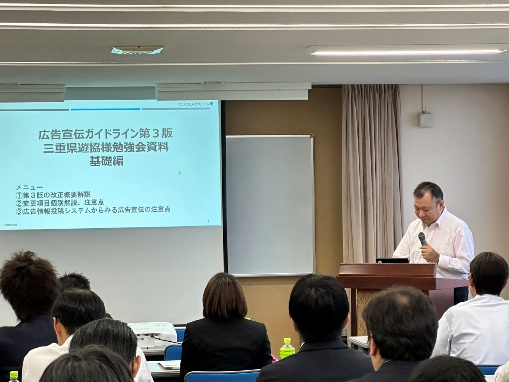 近年、県内では一部にガイドラインの理解に温度差が見られ、是正勧告を受ける事案も発生していることから、三遊協では広告宣伝に対する理解をより一層深めるために今回の講習会を企画した。