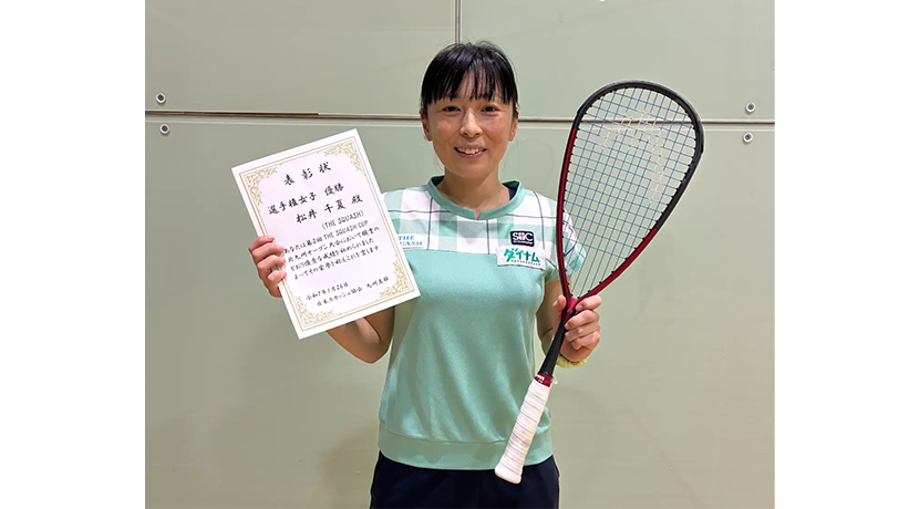 松井選手は元全日本チャンピオンとして長年スカッシュ界を牽引しており、一児の母として育児と競技を両立しながら現在も日本トップクラスの選手として活躍を継続。また、北九州市初のスカッシュ専門施設「THE SQUASH(ザ スカッシュ)」にてコーチとしても指導に携わり、競技の普及と次世代育成に尽力している。
