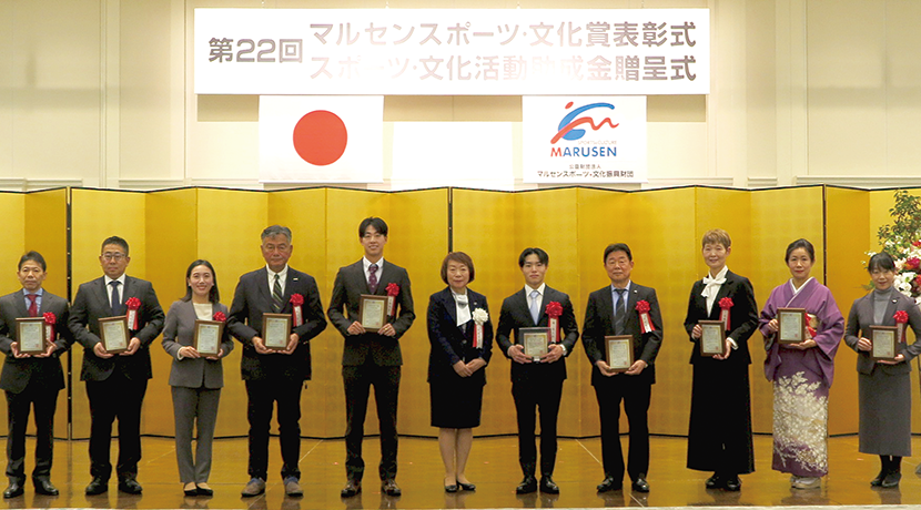成通グループ・ハリウッドチェーン(千原行喜代表)が支援する公益財団法人マルセンスポーツ・文化振興財団(千原多美子理事長)は11月25日、岡山市北区のホテルグランヴィア岡山で「第22回マルセンスポーツ・文化賞表彰式」および「スポーツ・文化活動助成金贈呈式」を開催した。式典にはスポーツ・文化芸術分野で活躍する岡山県ゆかりの受賞者や関係者らが出席し、県内のスポーツ・文化振興に寄与した個人・団体をたたえた。