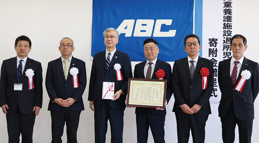静岡県を中心にパチンコホール33店舗を展開するABC(静岡市駿河区)は3月11日、静岡市葵区の静岡県総合社会福祉会館シズウエルにおいて、「児童養護施設退所児童等応援事業」に伴う寄付金贈呈式を開催し、静岡県児童養護施設協議会に124万円を寄付した。