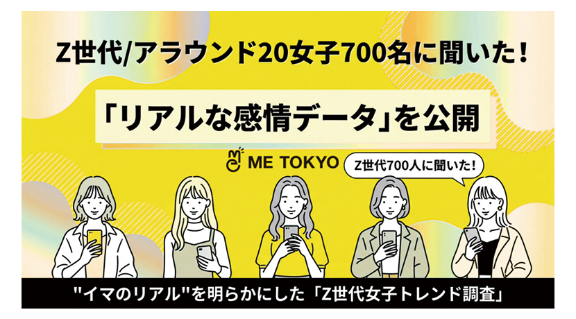 今回設立したMTERは、ME TOKYOブランド誕生からの3年間で蓄積した「Z世代のインサイトに対する知見」と「Z世代女子の集客力」という独自資産を活用し、Z世代女子のインサイトを一次情報として補足・分析・翻訳することで、企業・団体・社会の課題解決に貢献する新しいリサーチ機関。今回発表した「Z世代女子トレンド調査」は、MTERとして設立後初の自主調査となる。