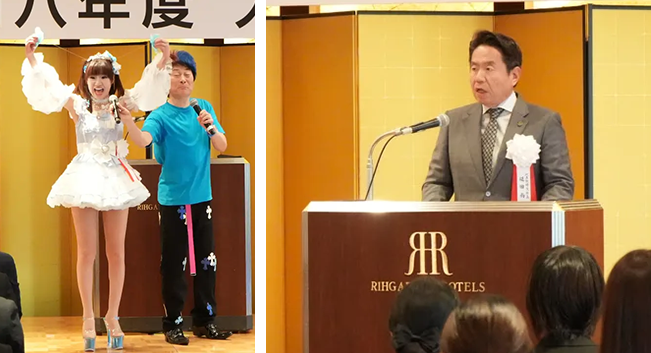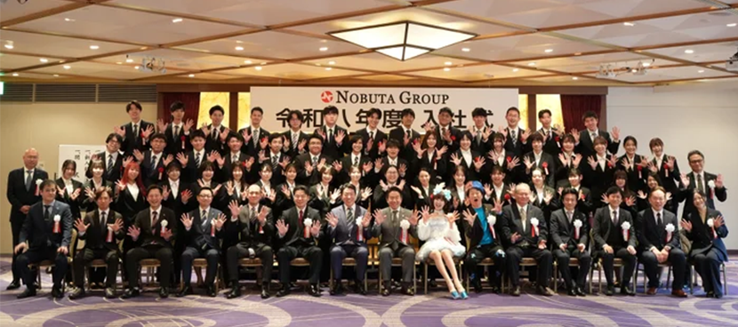 総合エンターテインメント事業を展開する延田エンタープライズ(大阪市中央区)は4月1日、大阪市北区のリーガロイヤルホテル大阪 ヴィニェット コレクションで、漫才コンビ「かつみ❤︎さゆり」をサプライズゲストに迎えて入社式を開催。今年は49名(遊技場事業 47名、スポーツ事業 1名、温浴事業 1名)が入社した。