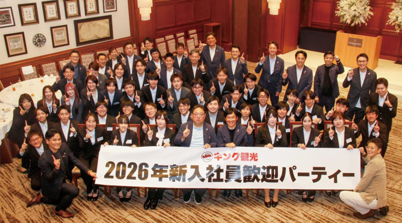 キング観光(三重県桑名市)は4月1日、令和8年度の新入社員入社式を名古屋市中村区のザ・ストリングホテル名古屋において開催した。今回の入社式はパーティー形式で行われ、来賓や特別ゲストを招いた華やかな催しとなった。