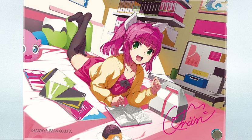 今回の注目商品は、描き下ろしイラストを使用した「海物語アクリルアートパネルくつろぎウリンVer.」。透明感のあるアクリル素材に二層印刷を施すことで、奥行きと立体感を演出し、部屋やデスクを華やかに彩るインテリア性の高いアイテムとなっている。