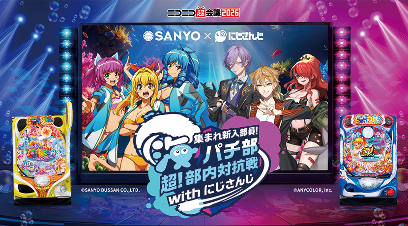 メイン企画は、人気VTuberグループ「にじさんじ」のメンバーとSANYOチームによる『海物語』パチンコ対決。伏見ガク、榊ネス、レイン・パターソンらが出演し、両日ステージで熱戦を繰り広げる。