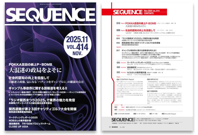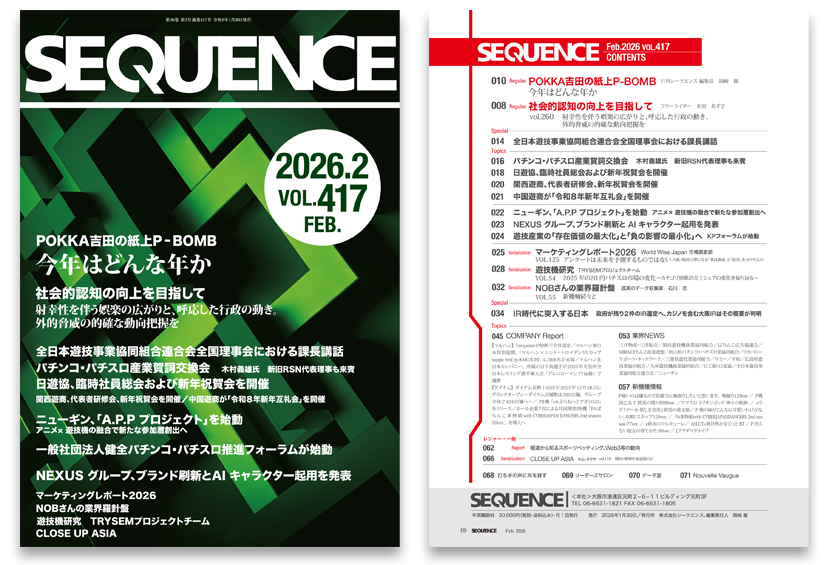 月刊シークエンスは、1990年12月に創刊の30周年を迎えたぱちんこ業界ビジネス情報紙です。